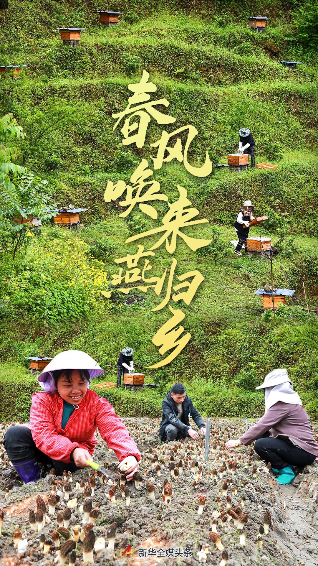 4月2日,农户在贵州省剑河县革东镇麻栗村的羊肚菌基地大棚采摘羊肚菌。新华社发(杨家孟 摄)