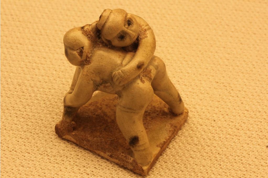 到河北博物院的白釉黑彩孩儿鞠球纹枕