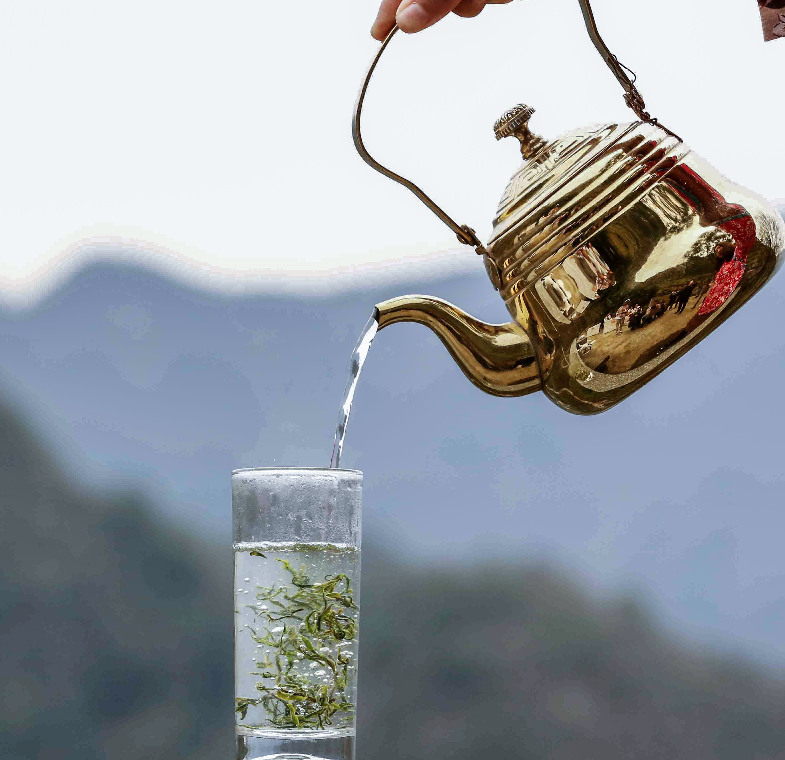 ↑这是2019年3月26日拍摄的浙江杭州淳安县鸠坑乡塘联自然村村民冲泡茶叶。新华社记者 徐昱 摄