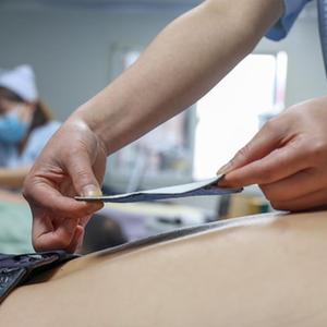 2022年5月12日,贵州省铜仁市玉屏侗族自治县中医院的护士在给患者做中医理疗。新华社发(胡攀学 摄)