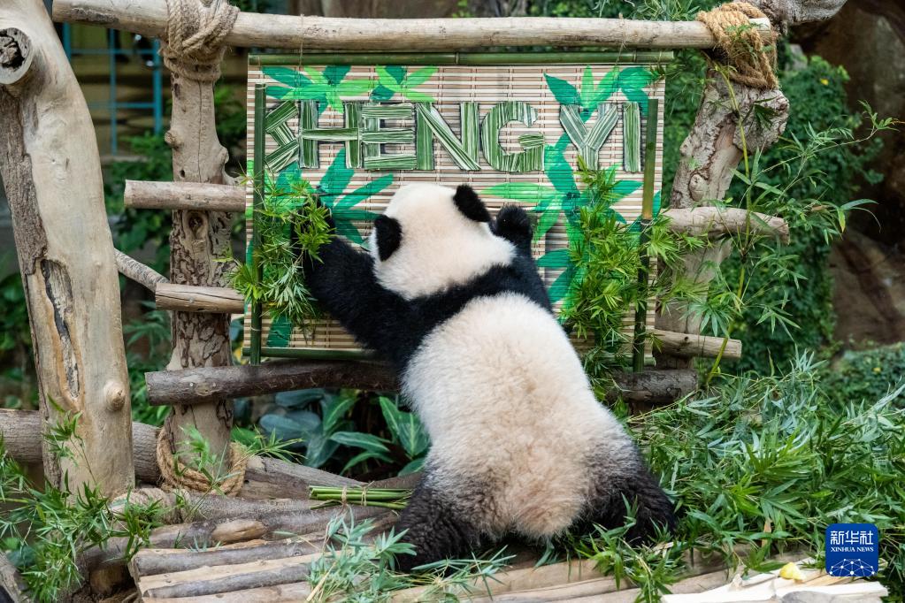 新华社吉隆坡5月25日电(记者朱炜 王大玮)中国旅马大熊猫“靓靓”生下的第三只宝宝25日在马来西亚国家动物园正式取名为“升谊”。马来西亚能源及天然资源部部长塔基丁和中国驻马大使欧阳玉靖出席取名仪式。