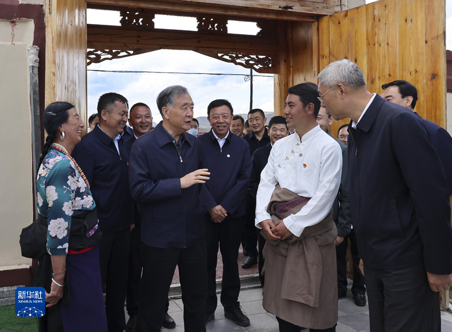 5月23日至25日,中共中央政治局常委、全国政协主席汪洋在甘肃甘南藏族自治州调研。这是5月23日,汪洋在碌曲县尕海镇尕秀村同村民交流。新华社记者 刘卫兵 摄