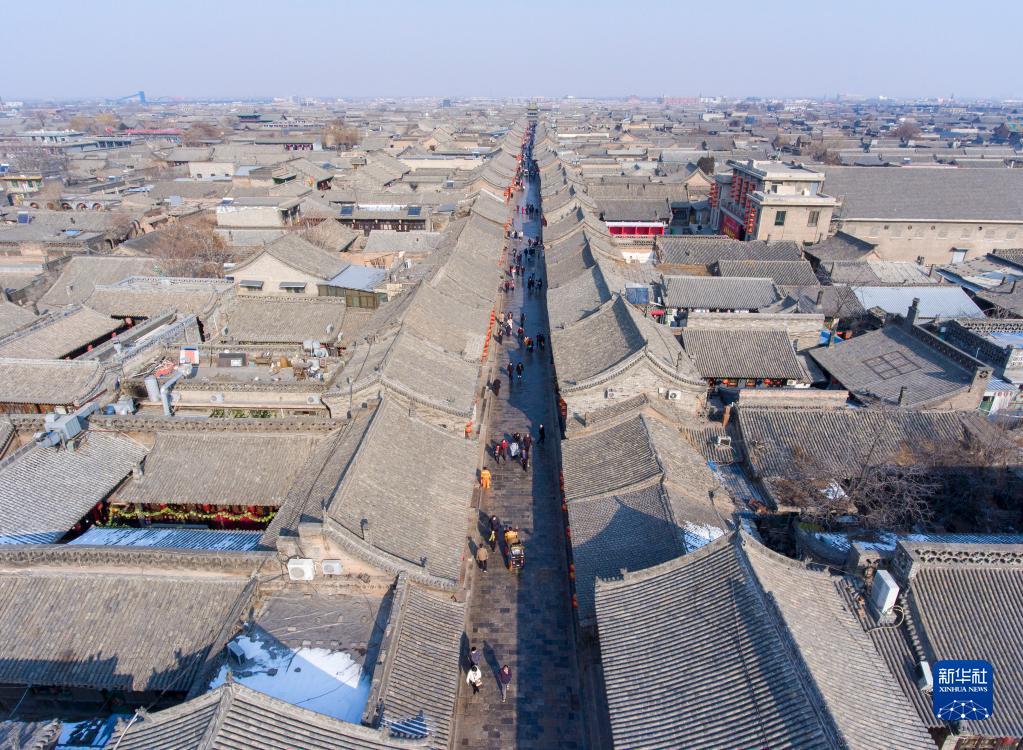 这是2月8日拍摄的平遥古城一角(无人机照片)。新华社记者 杨晨光 摄
