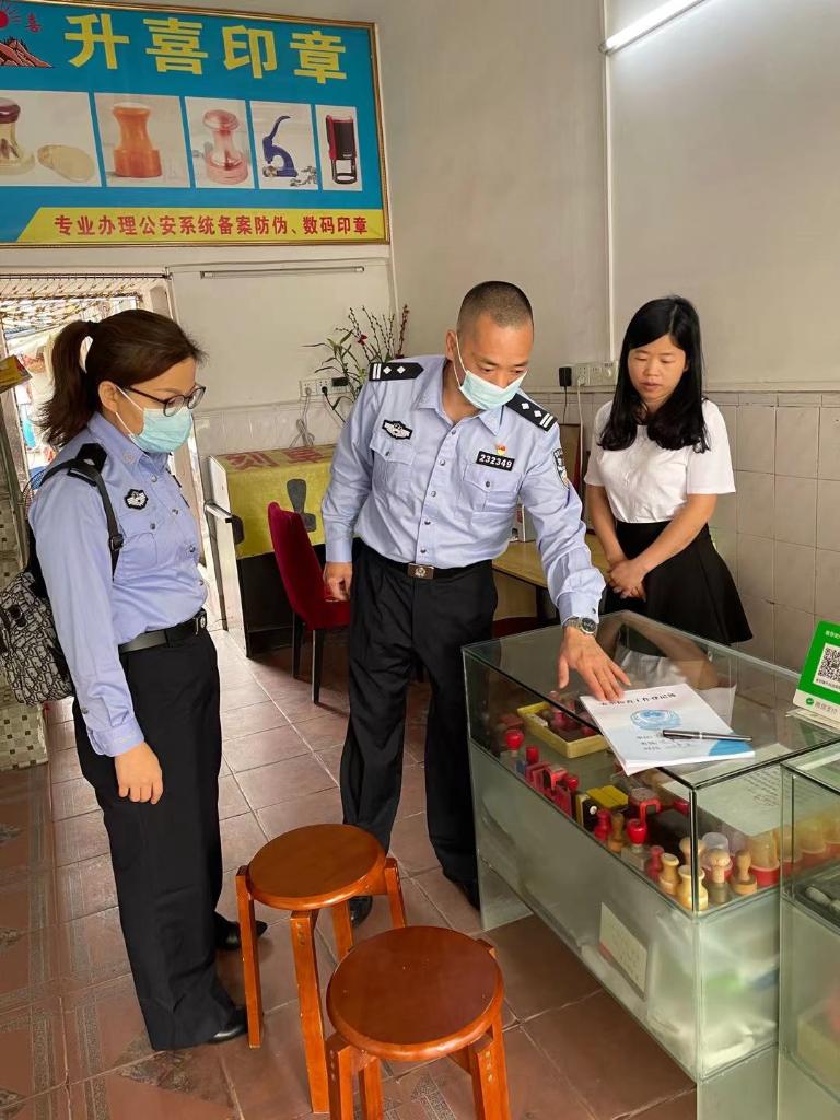 有一次,周文辉审批时发现一家公司有重复刻制印章的嫌疑,立即通知印章店停止刻章,随后辗转联系到该公司法人。原来,该公司一名股东利用股权转让的契机,盗用公司相关材料,企图违规刻印公司公章。事后了解,周文辉的及时监管处置为该公司止损数十万元。