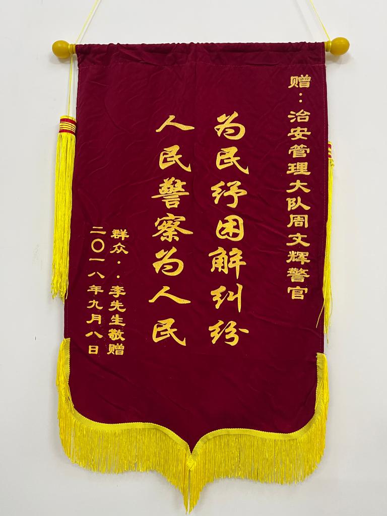 图为群众赠给周文辉的锦旗。高要公安分局供图