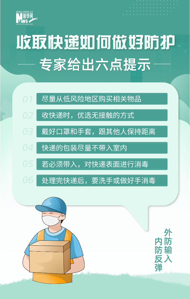 在5月27日举行的国务院联防联控机制新闻发布会上,中国疾控中心消毒学首席专家张流波介绍,在发生疫情的地区,群众流动减少了,快递的需求增加了。国家邮政局对快递消毒有专门的操作规范和指导文件,快递业也有专门的生产操作规划,明确规定了要实行分级分区的防控,其中对快递包括物品的仓储、物流、货物送达等环节,都专门规定了消毒的处理要求。