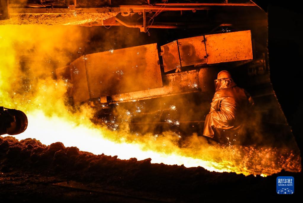 2021年7月1日,工人在鞍钢股份炼铁总厂新四号高炉进行生产作业。新华社记者 潘昱龙 摄