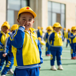 在西藏自治区山南市贡嘎县森布日村,霍党生在幼儿园准备跳课间操(3月22日摄)。新华社记者 周荻潇 摄