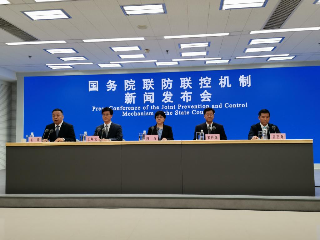国务院联防联控机制新闻发布会现场。新华社记者 田晓航 摄