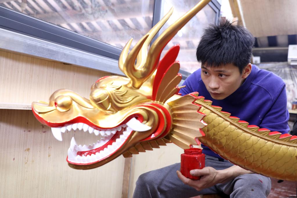 张伟潮为龙头上漆。新华社记者黄国保 摄