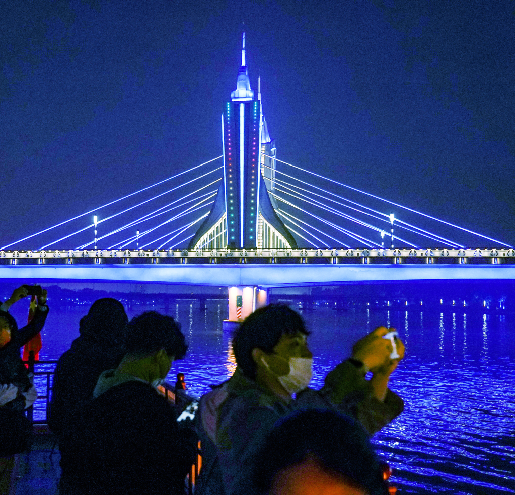 2021年10月,人们乘坐游船夜游位于北京市通州区的北运河。新华社记者陈钟昊 摄