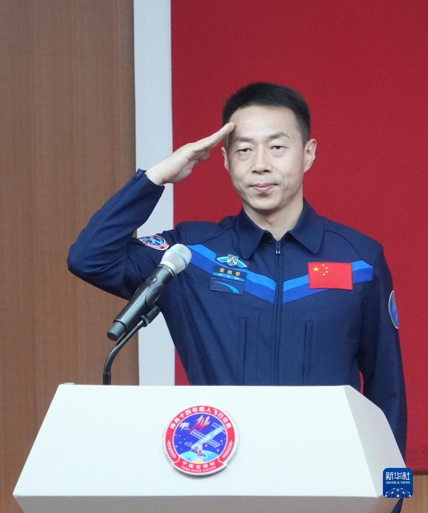 6月4日,航天员蔡旭哲在酒泉卫星发射中心与记者见面。新华社记者 李刚 摄