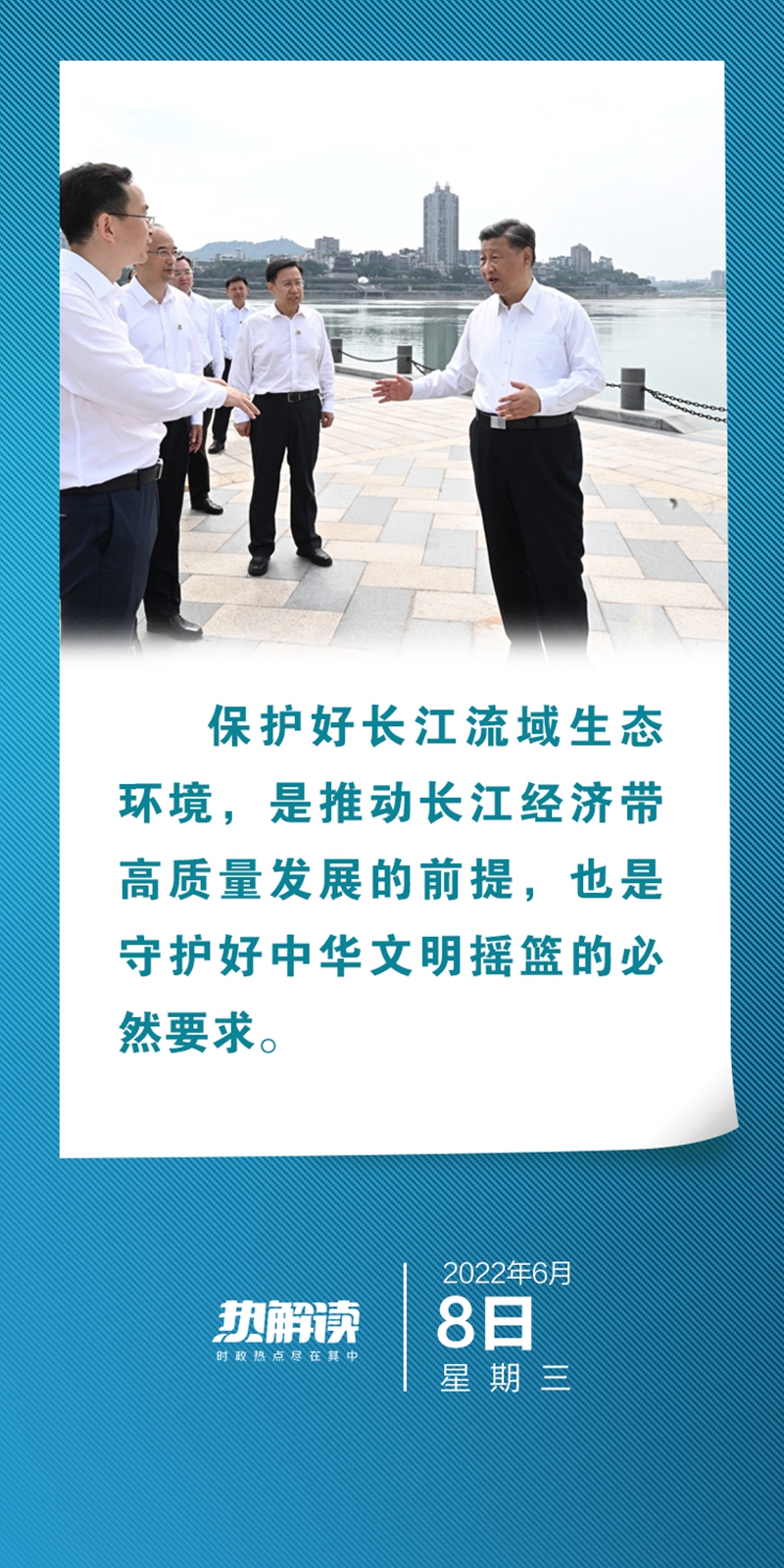 自古文明依水而兴。“守护好这一江清水”着眼于国家发展大局,更是对中华民族永续发展的战略谋划。