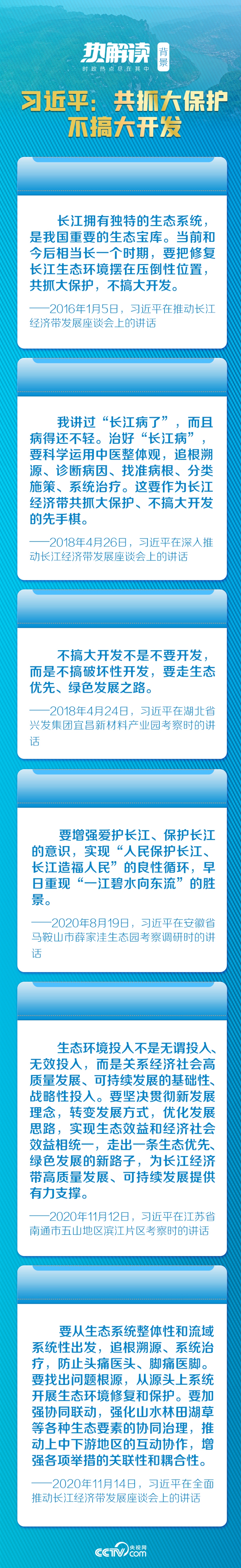 在这次会议上,总书记明确提出“共抓大保护,不搞大开发”,清晰勾画了推动长江经济带“生态优先、绿色发展”的宏伟蓝图。