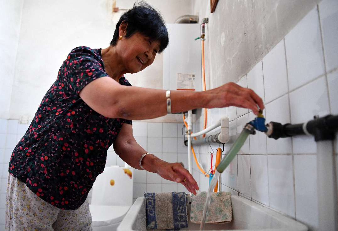 ↑天津市津南区双桥河镇西官房村村民在家里的卫生间洗手(2020年7月8日摄)。西官房村开展农村人居环境整治工作,实施厕所革命、自来水入户等工程,村容村貌不断提升。