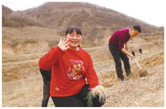 陕北霞姐(王敏)(右)和妹妹(蓉蓉)(左)在地里挖白蒿。(受访者供图)