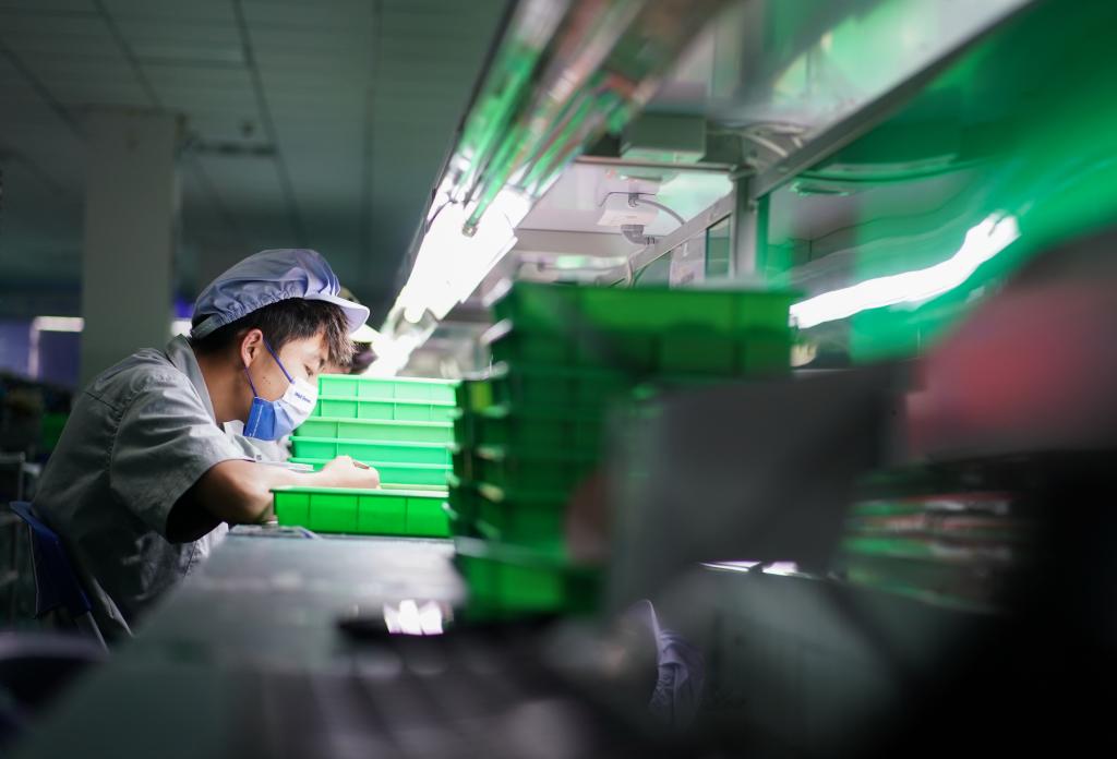 6月9日,江苏精研科技股份有限公司工人在车间忙碌。(新华社记者季春鹏 摄)