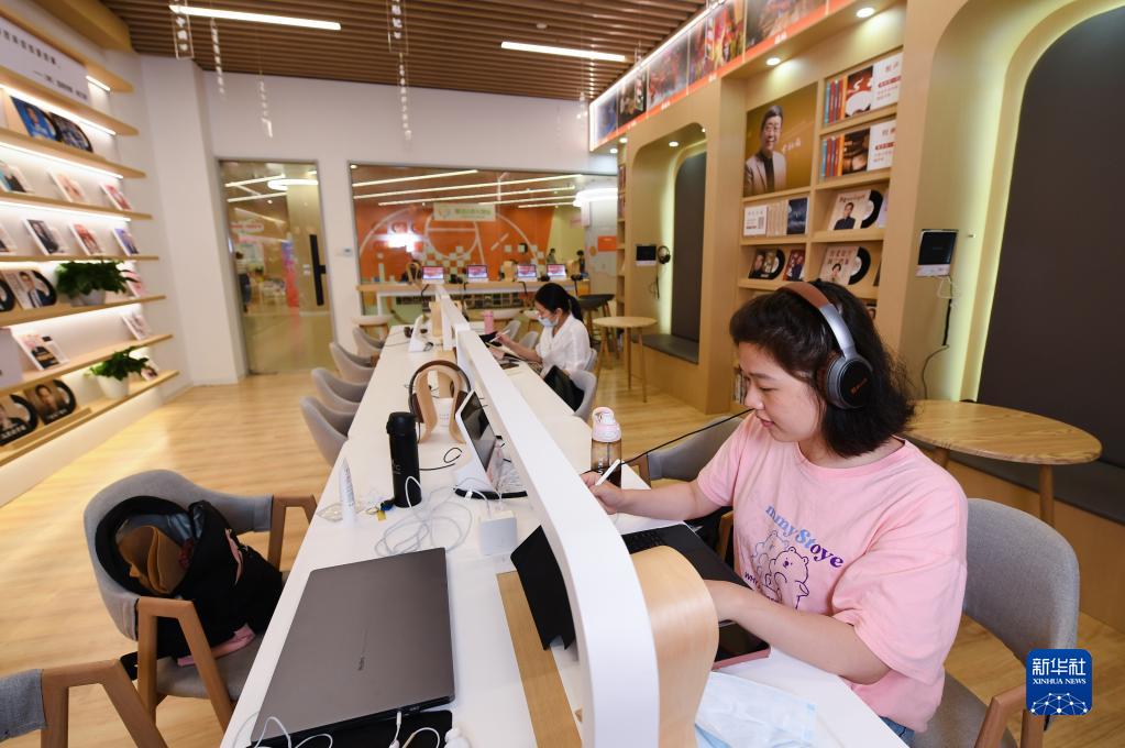 6月2日,在浙江省杭州市余杭区葛巷未来社区文化家园,居民在有声图书馆内学习。新华社记者 翁忻旸 摄