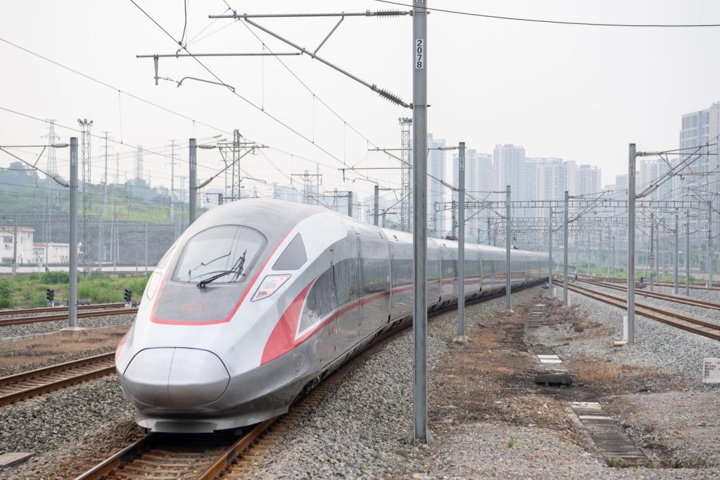 6月20日,郑渝高铁重庆首发G52次列车从重庆北站发车。新华社记者 唐奕 摄