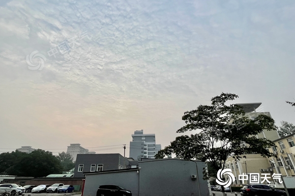 今晨,北京天空云量较多。(图/中国天气网 王晓)