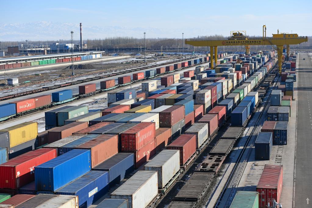 “中欧(中亚)班列开行以来,新疆霍尔果斯、阿拉山口两大口岸累计通行进出境班列超过5万列,仅2021年,中欧班列运送货物146万标箱,货值749亿美元,在中欧贸易总额中占比8%。”中国铁路乌鲁木齐局集团有限公司负责人介绍。