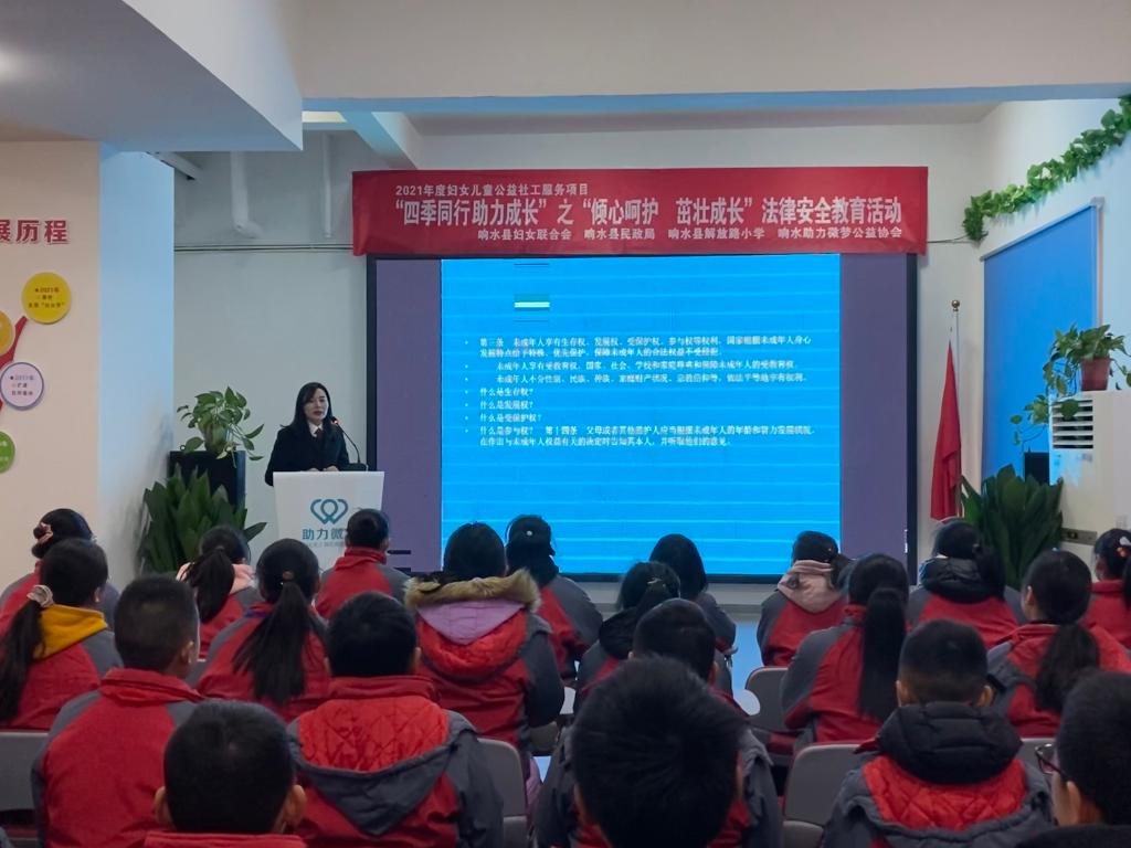 响水镇解放路小学位于城乡接合部,全校有1273名学生,其中637名是留守儿童。“听了法官的讲课,我认识到,碰到霸凌等侵害要大声拒绝、及时报告。”解放路小学六年级学生赵雪莲说。她是一名留守儿童,父母常年在外务工。2021年11月,响水县人民法院法官来到学校,通过一个个案例,讲解了未成年人常遭受的侵害类型,让学生们增强自我保护意识。