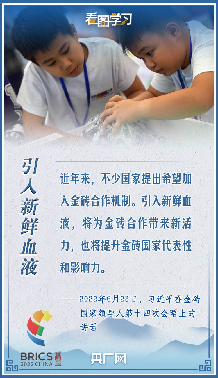 2022年6月23日,习近平主席在北京以视频方式主持金砖国家领导人第十四次会晤并发表题为《构建高质量伙伴关系 开启金砖合作新征程》的重要讲话。新形势下,习近平强调,“金砖国家更要敞开大门谋发展、张开怀抱促合作”。一起来学习!