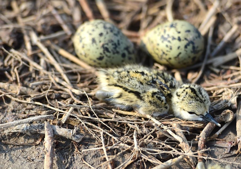跟随护鸟队员悄悄走进湿地核心区,耳边传来此起彼伏的鸟鸣声。几只白骨顶鸡“家长”正带着刚出生不久的“孩子”出游。通过观鸟镜头远望,几只反嘴鹬趴在湿地中央的小岛上孵化鸟蛋,鸟巢里,两只雏鸟刚刚破壳而出。这一切,与湿地风光构成了美丽的生态画卷。