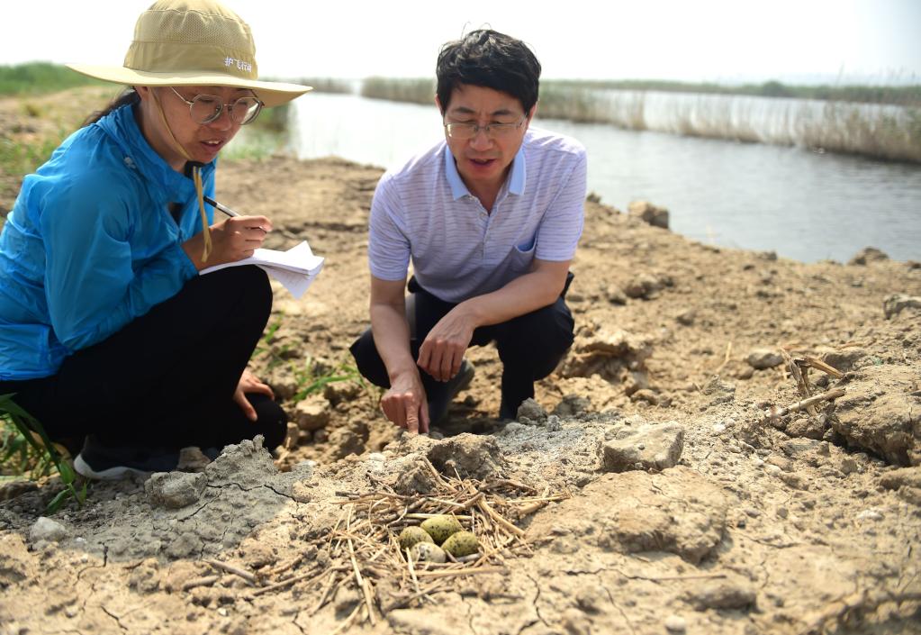为了给鸟儿繁殖后代营造良好的环境,当地开展了“护佑鸟儿‘产房’”行动,进行鸟类健康监测、鸟类救助和引水蓄水,邀请护鸟专家对湿地鸟儿繁殖情况进行调查,提出科学的保护意见。