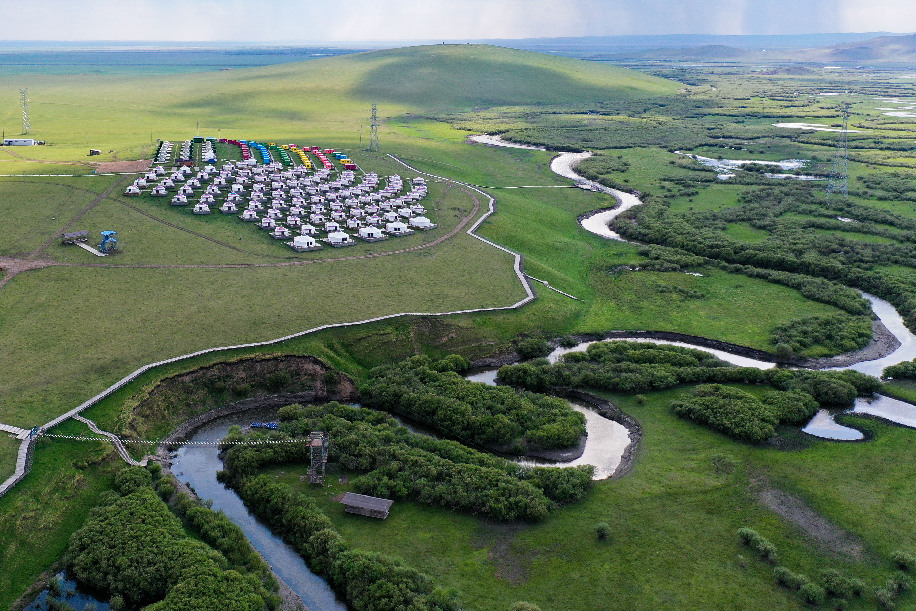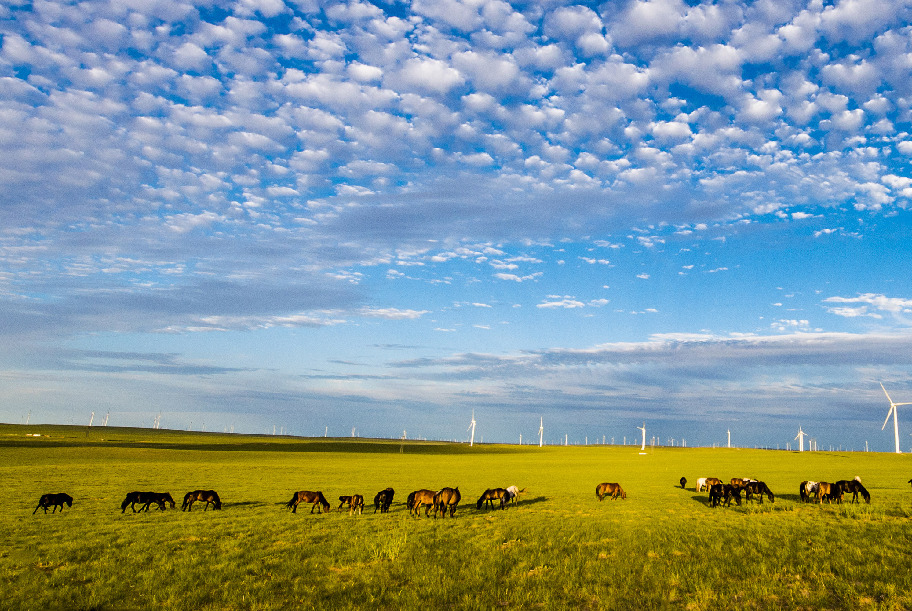 ↑内蒙古乌拉特草原景色(2021年7月11日摄)。