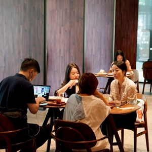 6月29日,市民在星巴克臻选上海烘焙工坊内用餐。从6月29日开始,上海有序恢复餐饮堂食。新华社记者 刘颖 摄