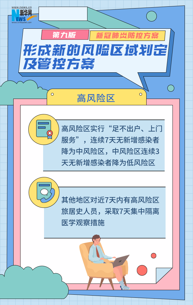 第九版新冠肺炎防控方案将封管控区和中高风险区两类风险区域划定标准和防控措施进行衔接对应,统一使用中高风险区的概念,形成新的风险区域划定及管控方案。主要修订内容如下: