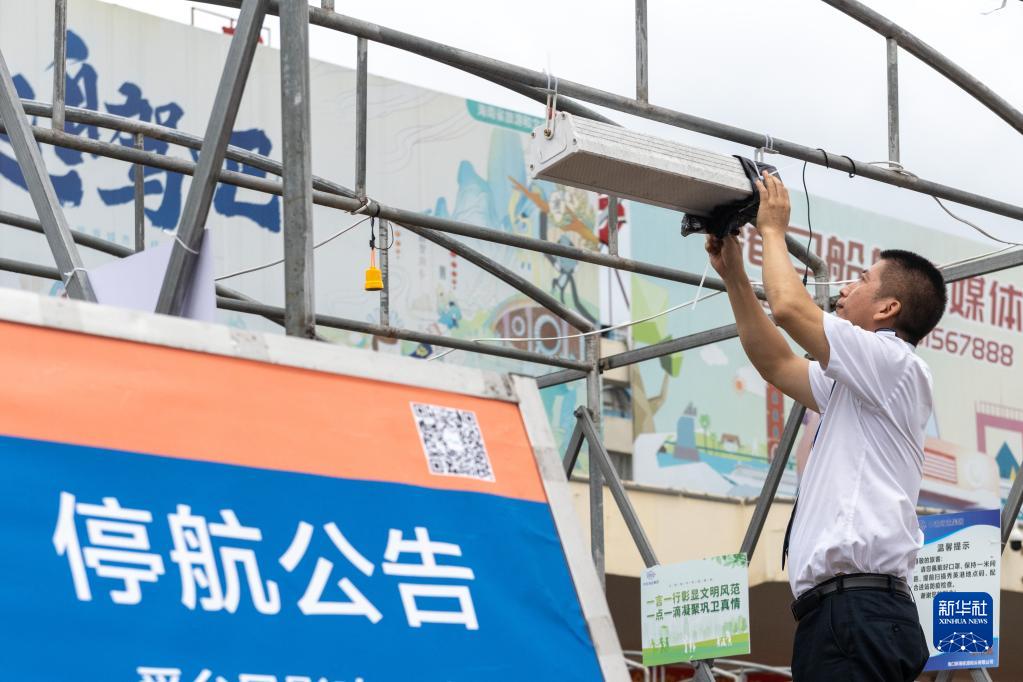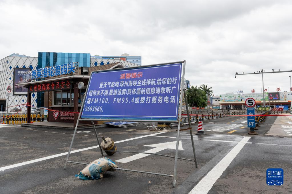 7月1日拍摄的海口秀英港轮渡码头外有关停航的提示标牌。新华社记者 胡智轩 摄