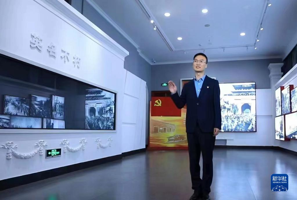哈尔滨工业大学思政课教师张世昌在东北烈士纪念馆讲青年系列党课的录制现场(资料照片)。新华社发