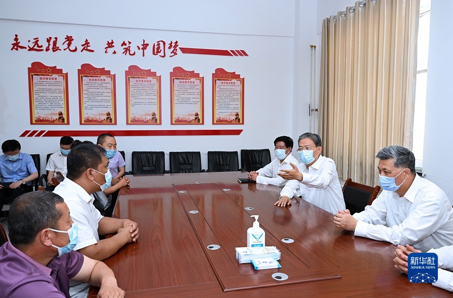 6月28日至7月1日,中共中央政治局常委、中央纪委书记赵乐际到新疆调研。这是6月28日,赵乐际在新疆生产建设兵团第十四师四十七团七连同党员代表座谈,了解基层党风廉政建设和反腐败工作,听取大家的意见建议。新华社记者 饶爱民 摄