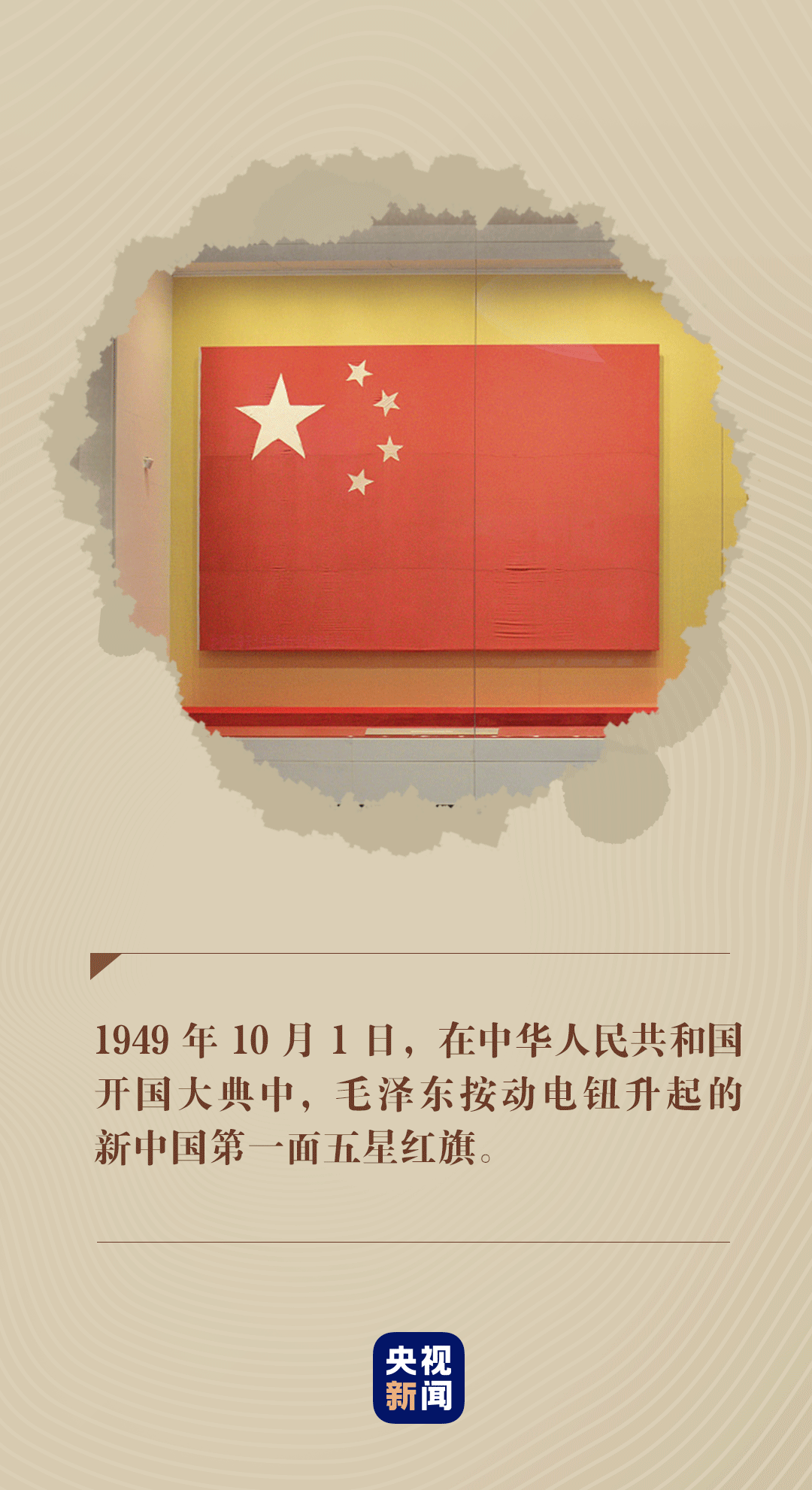 1949年10月1日,新中国第一面五星红旗在北京天安门广场升起。五星红旗上,四颗小星环拱着一颗大星,象征着亿万人民心向伟大的中国共产党。