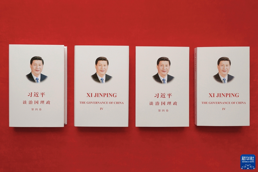 这是《习近平谈治国理政》第四卷中英文版的精装版和平装版。新华社记者 张玉薇 摄