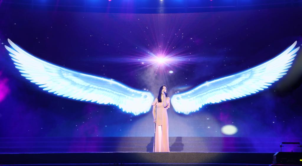 歌手尔玛阿依在演唱《挥着翅膀的女孩》。