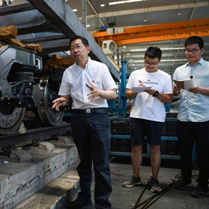 夏日炎炎,在位于成都的西南交通大学,全国优秀共产党员、中国科学院院士翟婉明正带领数名研究生,在轨道交通实验室里测取数据。
