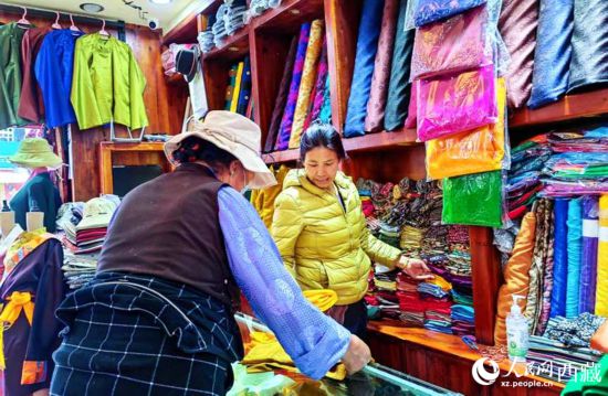 进入旅游旺季后,来自天南地北的游客到拉萨八廓古城赏民俗品文化,位于八廓街上的朵究仓藏装店也因此成了必备网红打卡店。“我在新闻里看到总书记来过你们店,所以专门过来的,想买一身藏装作纪念,老板你帮我看看哪件合适?”来自东北的吴女士边挑选衣服边说。