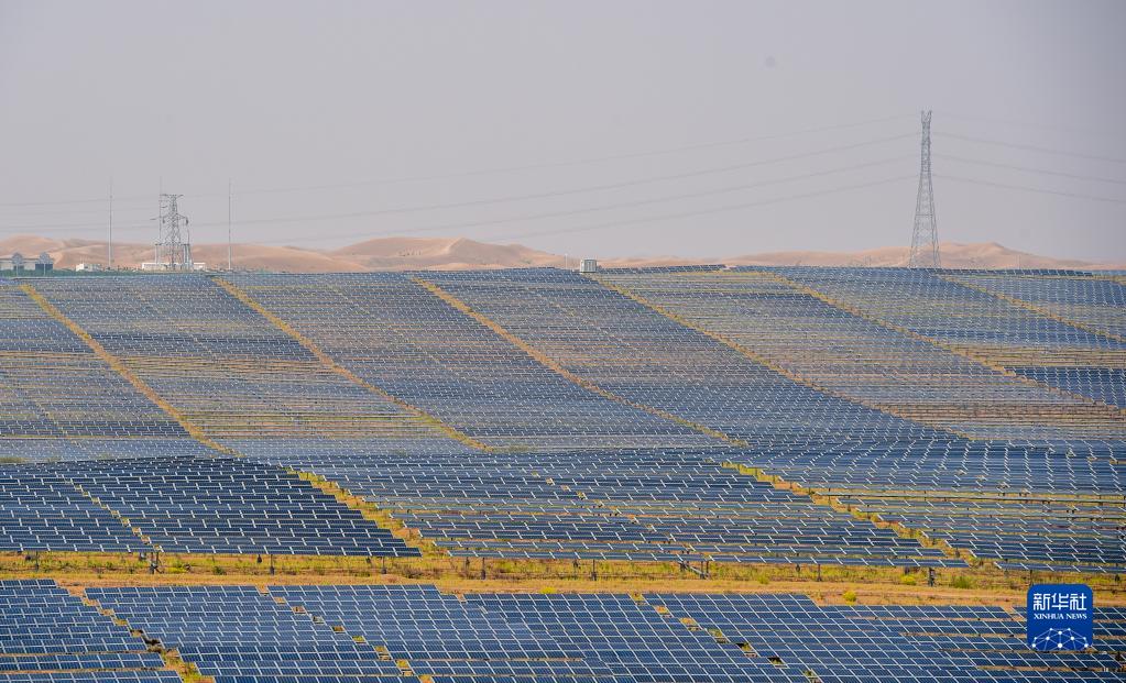 这是位于内蒙古库布其沙漠中的光伏发电基地(2020年9月14日摄)。新华社记者 连振 摄