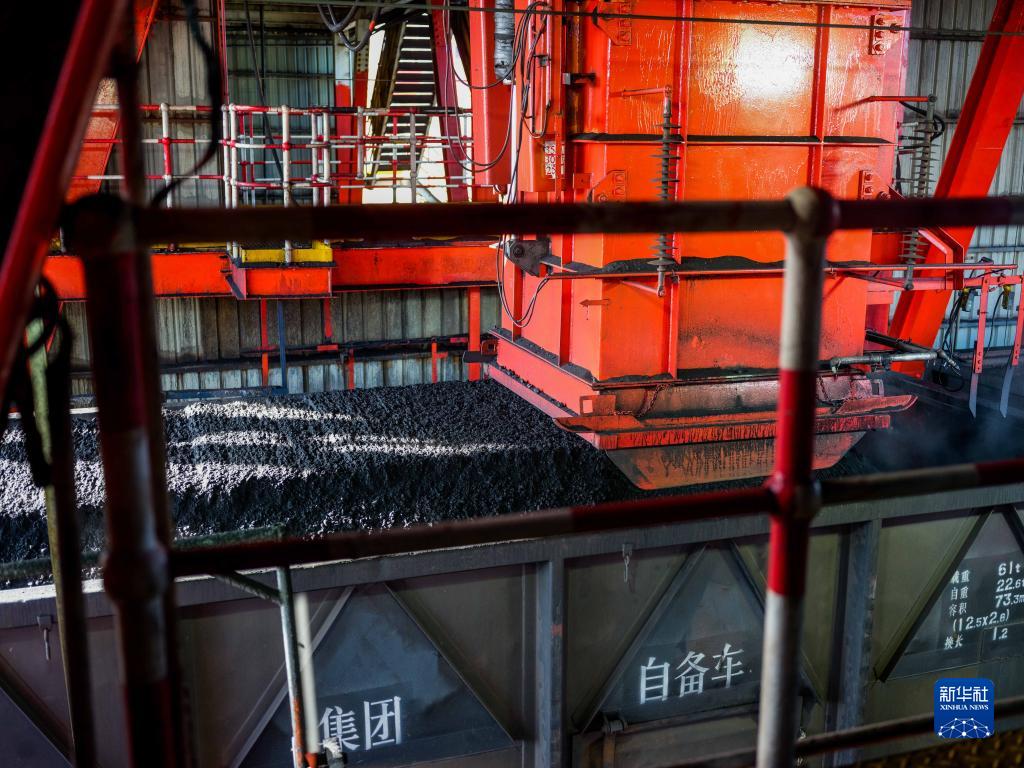 在内蒙古鄂尔多斯市国能神东煤炭洗选中心,煤炭被洗选装车(2021年12月16日摄)。新华社记者 连振 摄