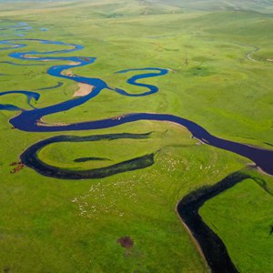 这是位于内蒙古呼伦贝尔市陈巴尔虎旗境内的莫日格勒河(2021年7月21日摄,无人机照片)。新华社记者 连振 摄