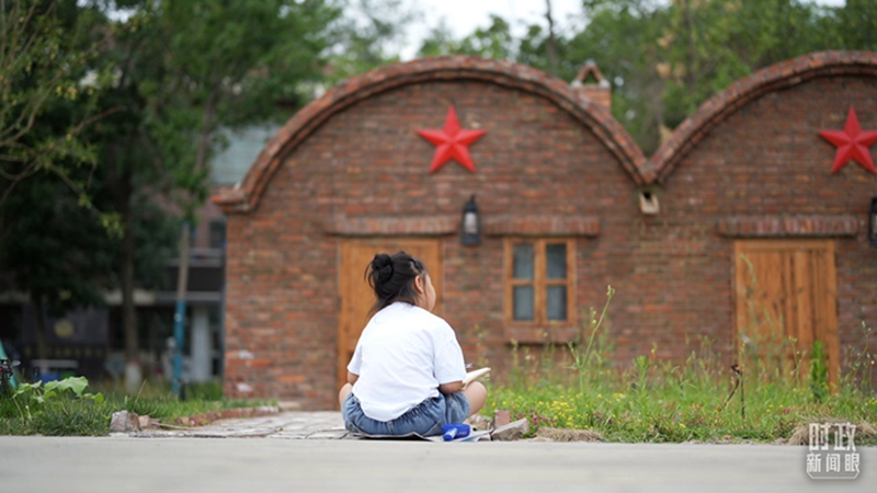 △军垦博物馆内写生的小朋友。(总台央视记者杨新禹拍摄)