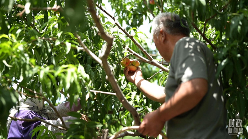 △一四三团九连蟠桃园进入收获季节。(总台央视记者杨新禹拍摄)