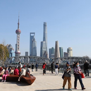 人们在上海苏州河边漫步休闲(2021年2月21日摄)。新华社记者 方喆 摄