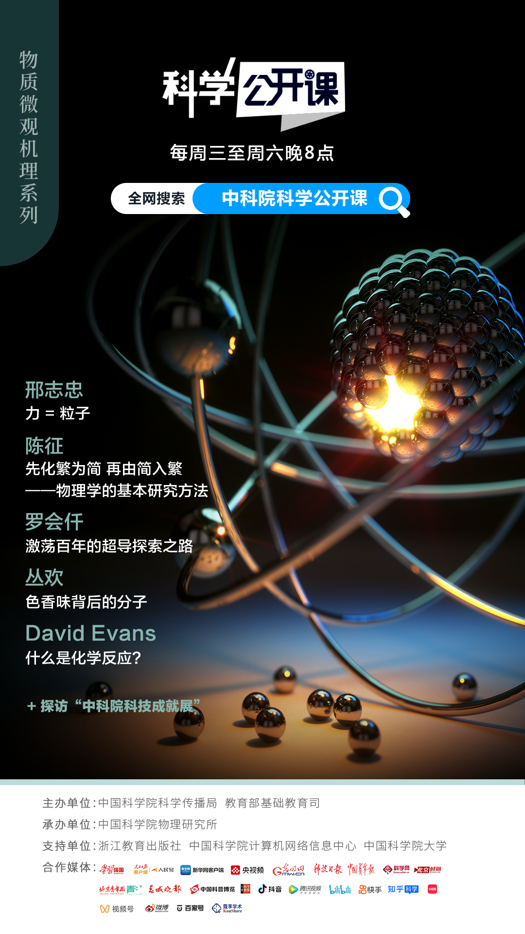 第二季《科学公开课》由中科院科学传播局、教育部基础教育司主办,中科院物理研究所承办,浙江教育出版社、中科院计算机网络信息中心、中国科学院大学提供支持。