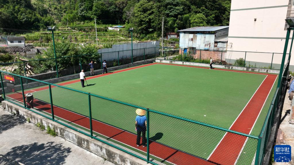 福建宁德市寿宁县托溪乡一处石板材厂拆除后被改建门球场(2022年7月12日摄)。新华社发(宁德市生态环境局供图)