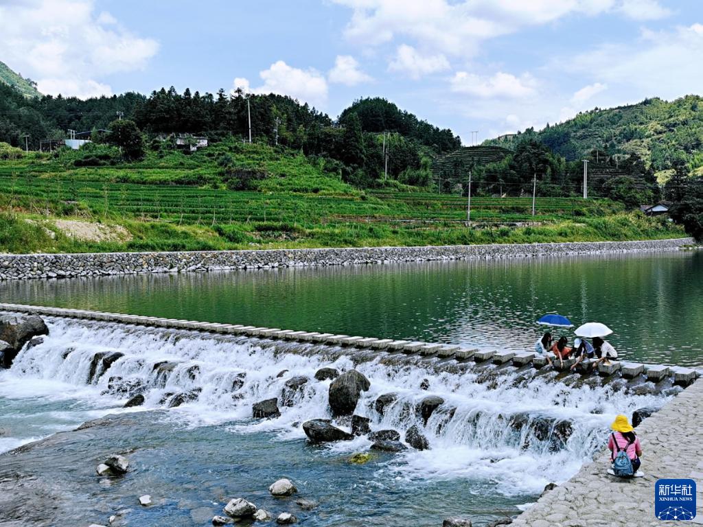 一些游客在福建宁德市寿宁县托溪乡托溪河畔戏水(资料照片)。新华社发(宁德市生态环境局供图)