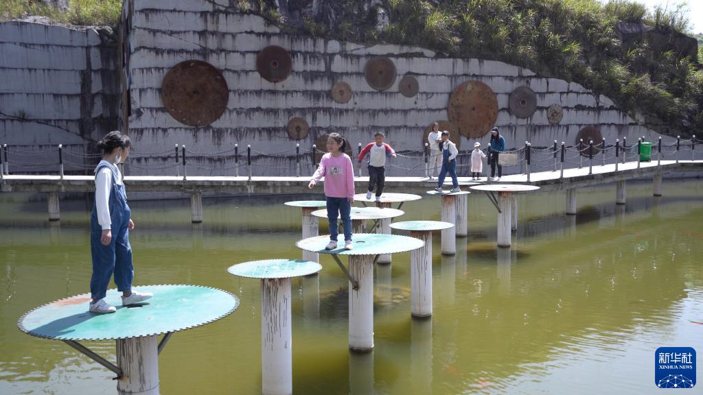 孩子们在福建宁德市古田县鹤塘镇棋坪洋矿山生态公园内嬉戏(资料照片)。新华社发(宁德市生态环境局供图)